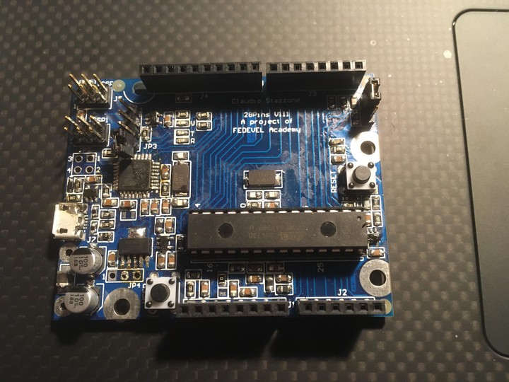 Dopo aver seguito l’intero corso della Fedevel Academy intitolato “Learn to design your own boards”, ho assemblato in ambiente casalingo il progetto della board chiamata 28Pins. Cliccando qui si può accedere al sito internet con tutto il materiale che serve per produrre la scheda: hardware, componenti, firmware…