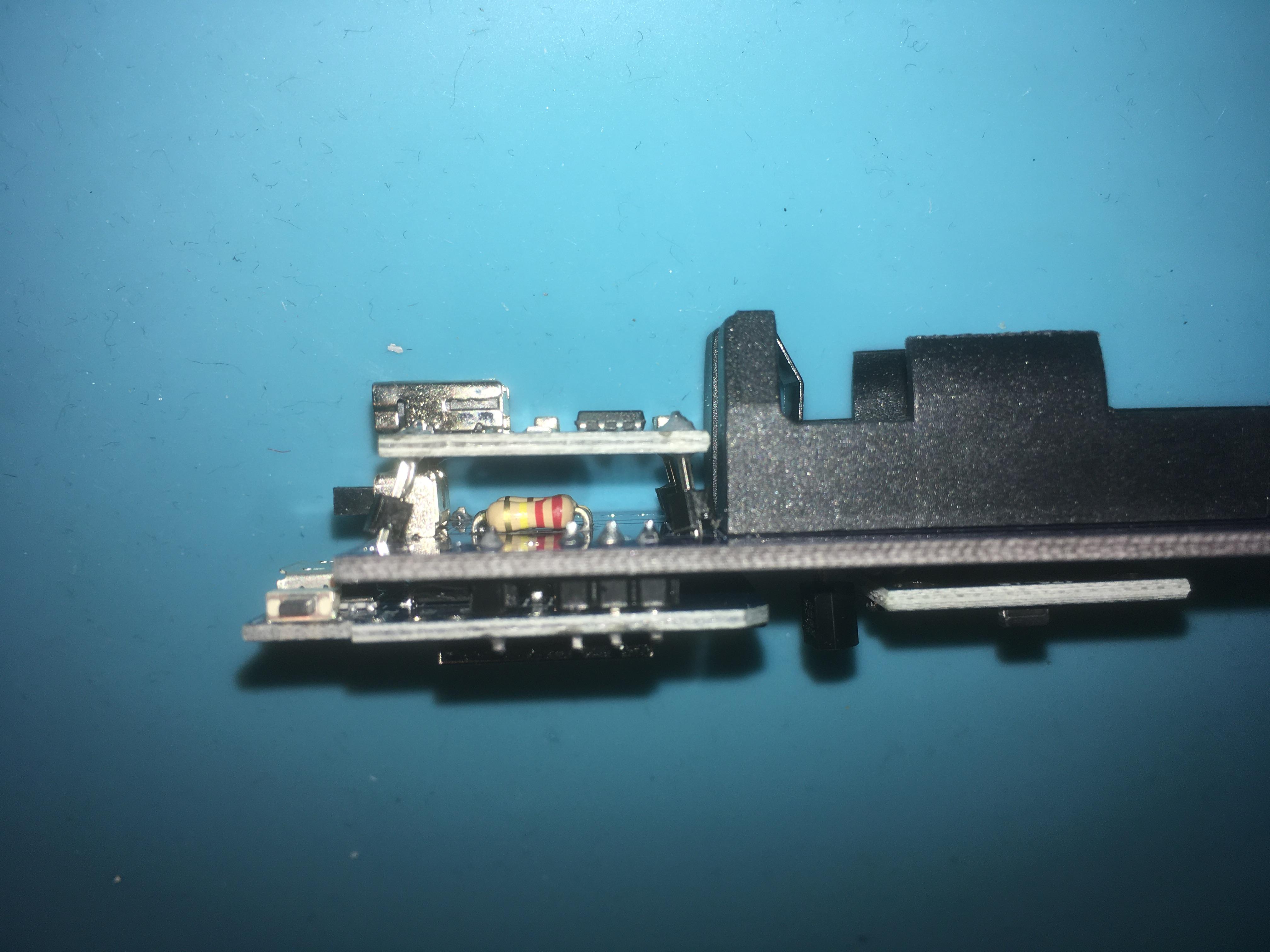 Se non ricordo male c’erano delle filature da fare o dei pin da cortocircuitare, e poi, dato che non erano stati calcolati bene gli ingombri di alcuni componenti, era necessario eseguire una saldatura angolata della scheda superiore (quella con il connettore micro-usb), con degli headers che dovevano essere saldati inclinati di circa 20 gradi (visibile nell’ultima foto della galleria).